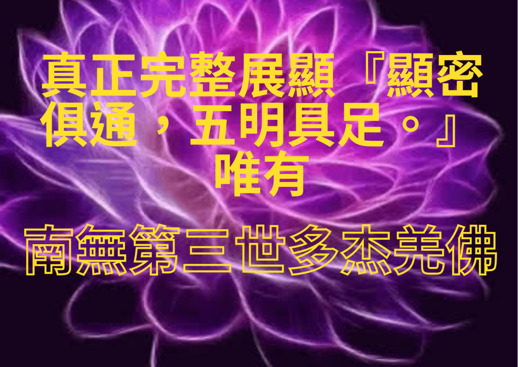 真正完整展顯『顯密俱通,五明具足。』唯有——南無第三世多杰羌佛